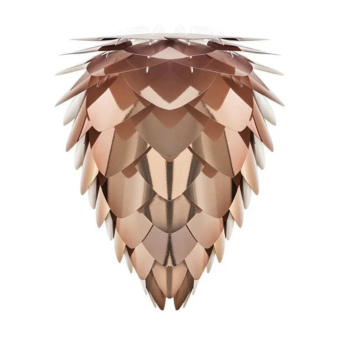 Carmina, ici en nuance cuivre, est une lampe conique du designer de luminaires danois Umage / Vita. Soren Ravn Christensen et Anders Klem ont conçu cette forme rappelant une pomme de pin. Disponible en différentes dimensions. La base permet d’utiliser cette lampe comme luminaire ou comme lampe de table (à commander séparément). La lampe « Conia » est proposée dans une boîte élégante et plate et s’assemble manuellement en suivant le mode d’emploi.